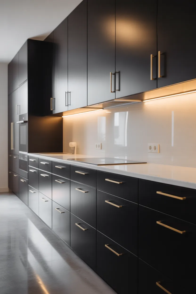 Matte black cabinets offer a soft, non-reflective finish that looks modern and hides fingerprints better than glossy surfaces. Perfect for everyday use.