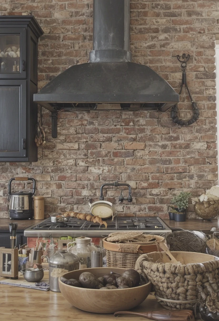 A brick wall adds texture and character, especially in industrial-style kitchens.