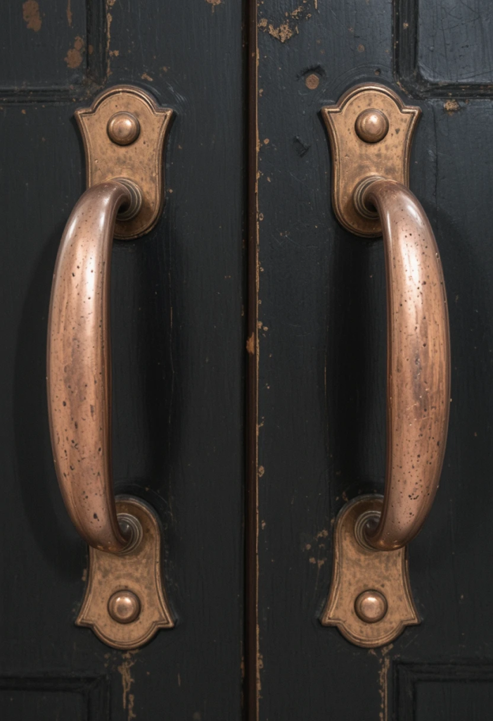 Copper handles introduce warm metallic tones that stand out beautifully against black.