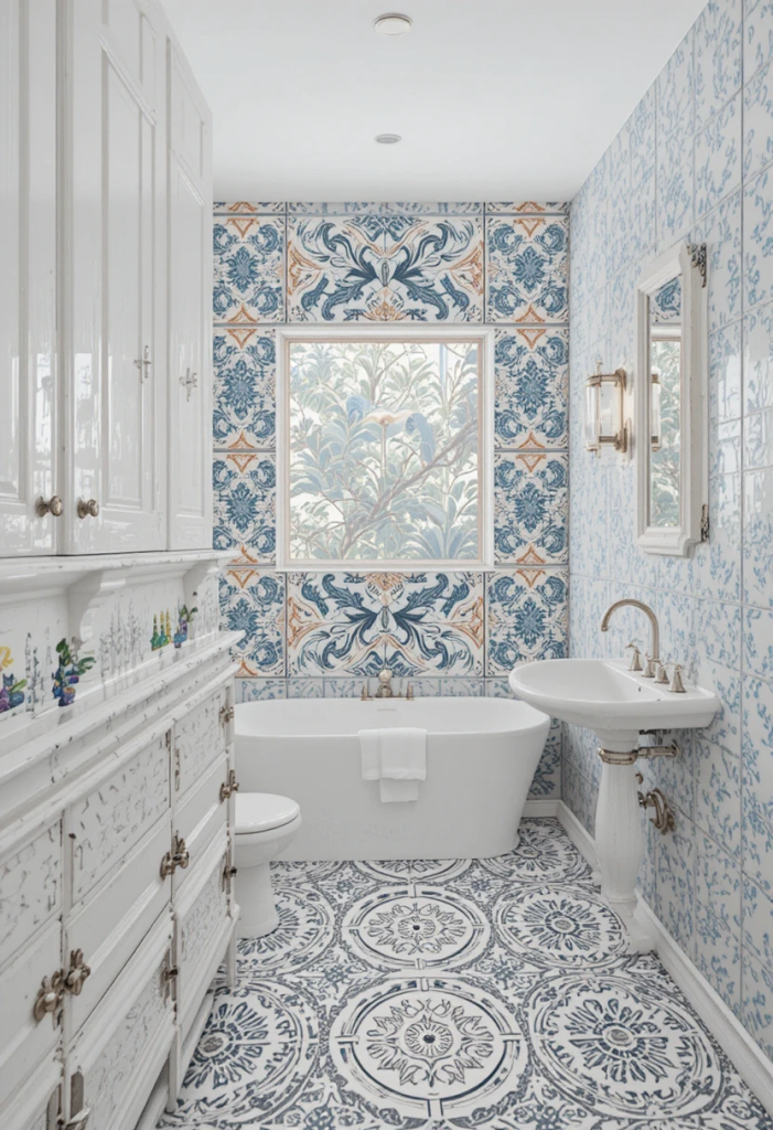 Bold pendant lights or chandeliers enhance the overall design impact.