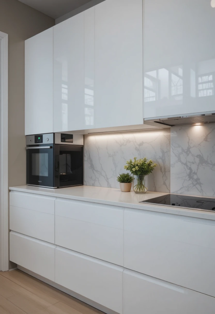 Glossy finishes reflect light, making your kitchen feel brighter and more spacious.
