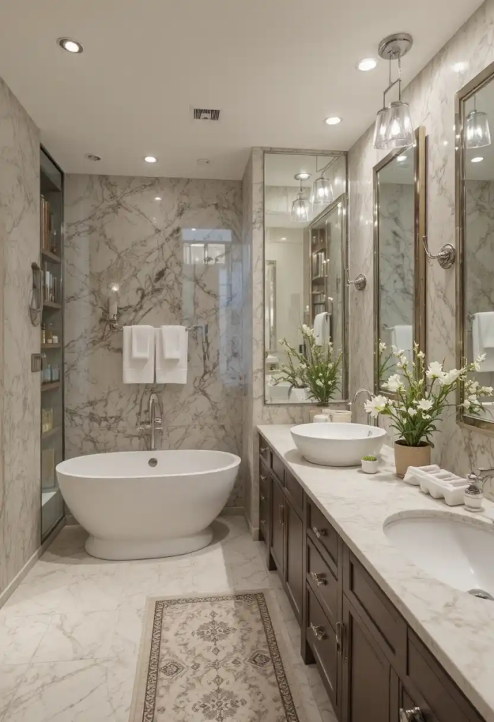 Add stone sinks, pebble tiles, or marble textures for a raw, organic feel. You can also explore more inspiration from marble bathroom ideas to blend elegance with natural textures.