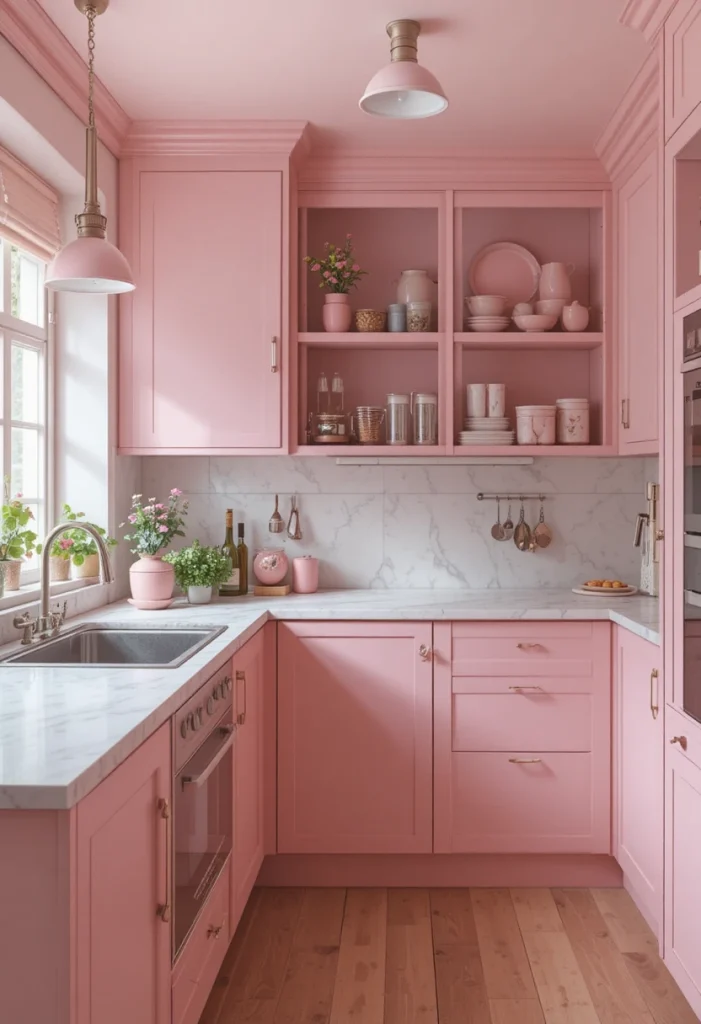 13. Pink Kitchen Colours Idea for a Unique Touch