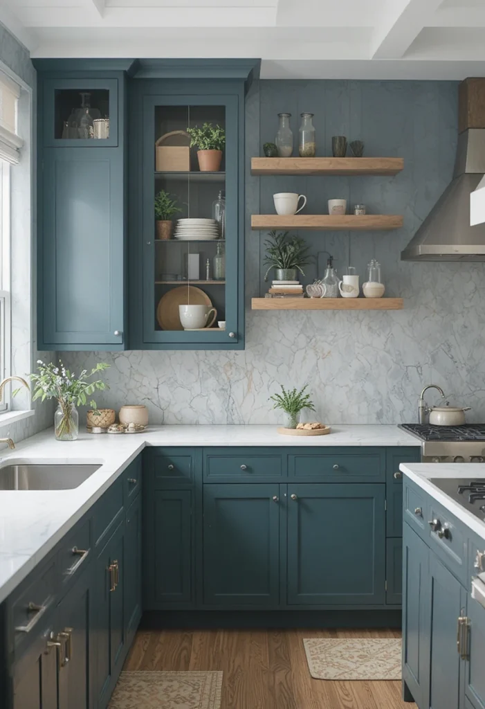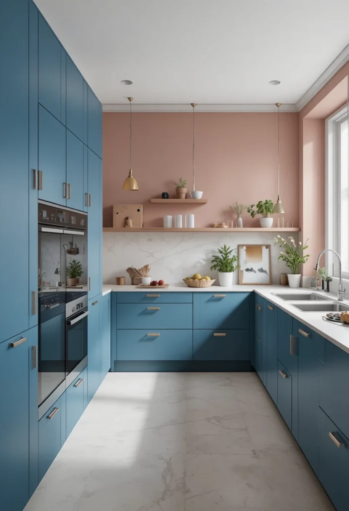 4. Blue Kitchen Colours Idea for Calm Vibes