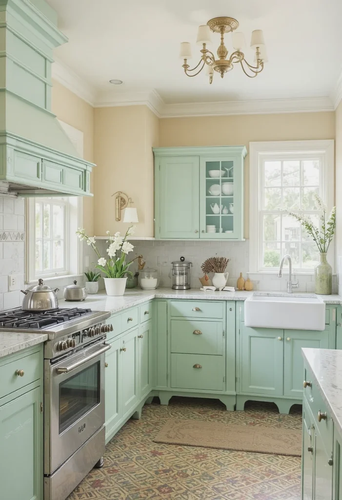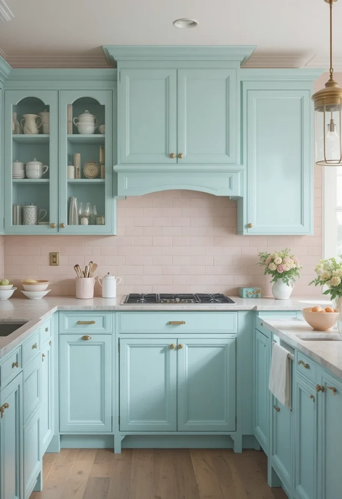 8. Pastel Kitchen Colours Idea for Soft Elegance