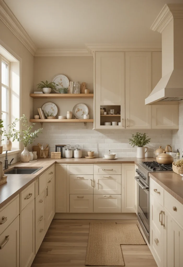 15. Cream Kitchen Colours Idea for Subtle Beauty