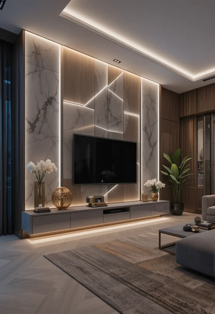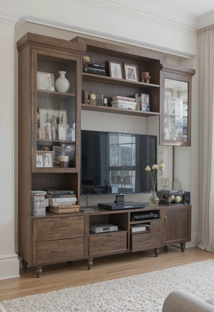 A TV unit can double as a functional divider between spaces. It helps organize your entertainment area while separating it from other sections of the room. This idea maximizes space usage without adding extra furniture.