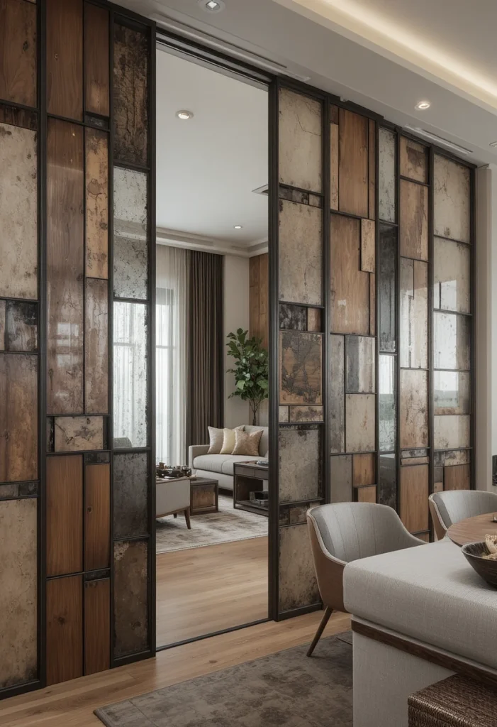 Combining materials like wood, metal, and glass creates a rich and layered design. Mixed material partitions add depth and luxury to your living room. They are perfect for homeowners who want a unique and customized interior style.