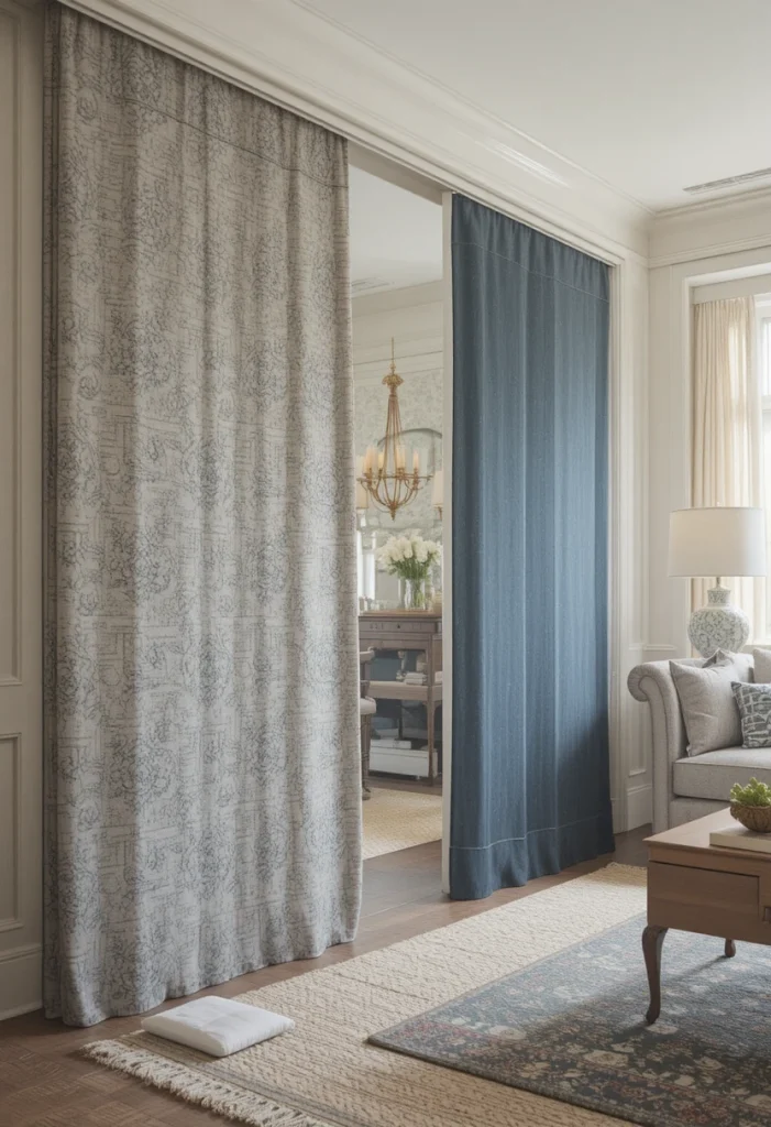 Curtains offer a soft and flexible way to divide your Living Room Partition Ideas. They can be easily opened or closed depending on your needs. This budget-friendly option adds texture and warmth while giving you the freedom to change the layout whenever required.