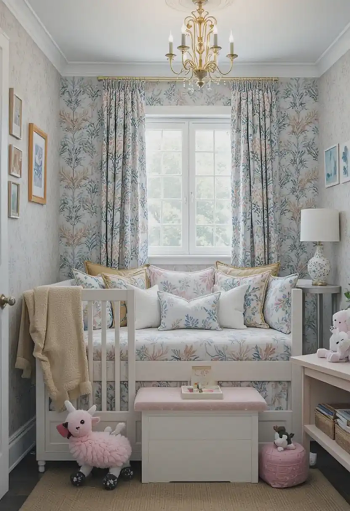 4. Stylish Nursery Room with Statement Wallpaper