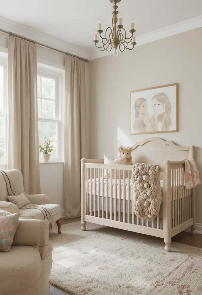 Neutral nursery tones like beige and white create a timeless look. These colors are versatile and easy to update with small decor changes over time. They also make the room feel bright and spacious.
